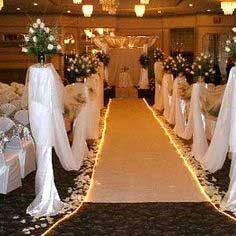 Installed on the floating center pole of the marquee, each fixture has four 150 watt halogen heads that are aimed at the ceiling to provide clean, reflective lighting.
